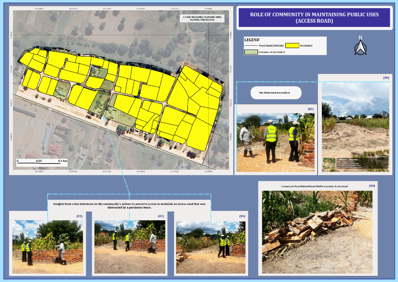 In several towns, communities actively defended public spaces and road reserves. In Madibira, for example (see Figure 4), residents collectively removed a wall obstructing a planned access road: